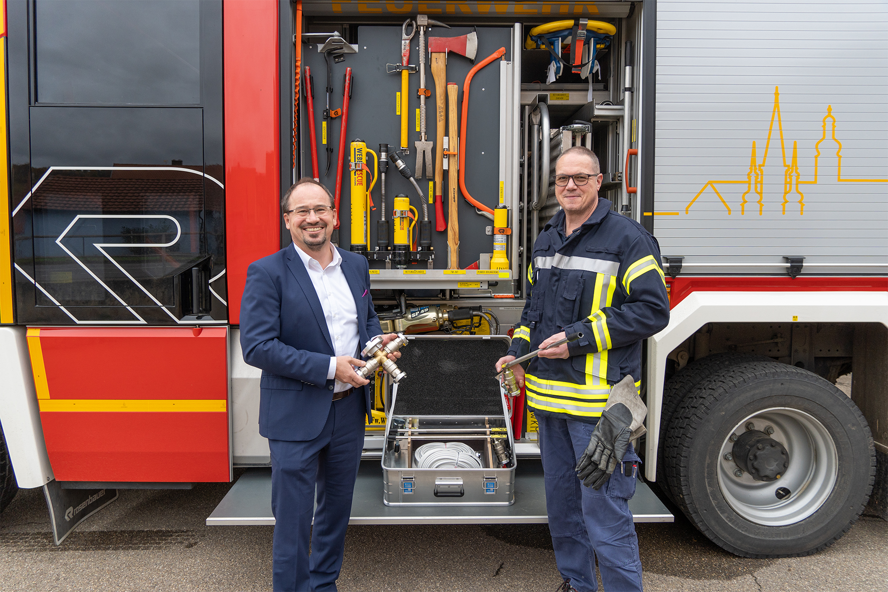 Michael Scheuenstuhl emphasised the fire brigade’s importance for Weikersheim: “The fire brigade has an enormous impact on our community, and it is an honour for us to support their work. The presentation of the new water mist lance is an expression of our appreciation for the tireless dedication of the firefighters, who are ready day and night to guarantee our town’s safety.”